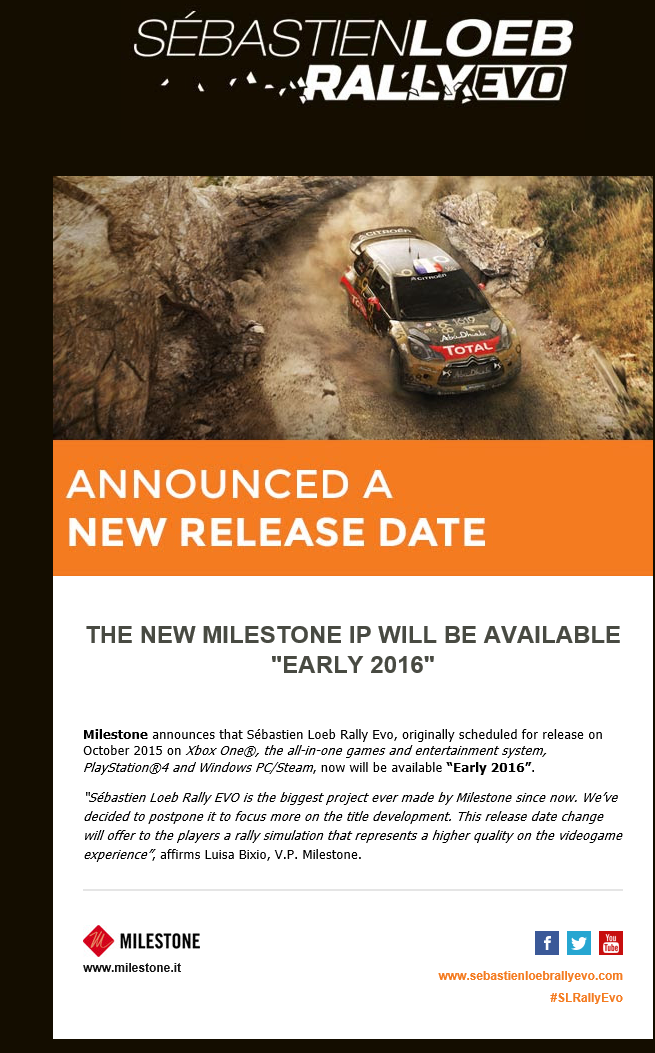 Looks like we’ll have to wait a little while longer to try Milestone’s attempt at reviving Richard Burns Rally, as Sebastien Loeb Rally Evo has been delayed until some time in 2016.